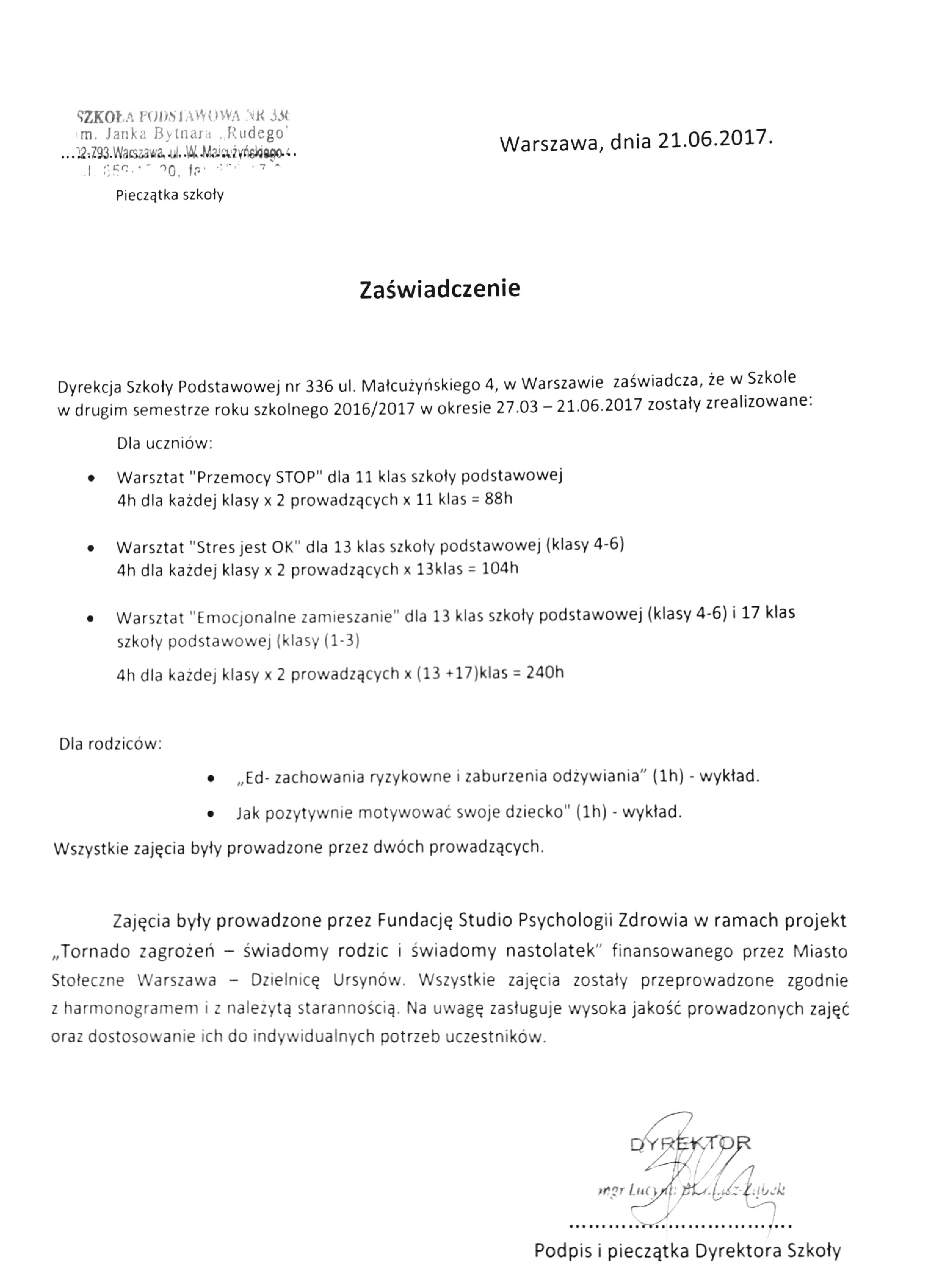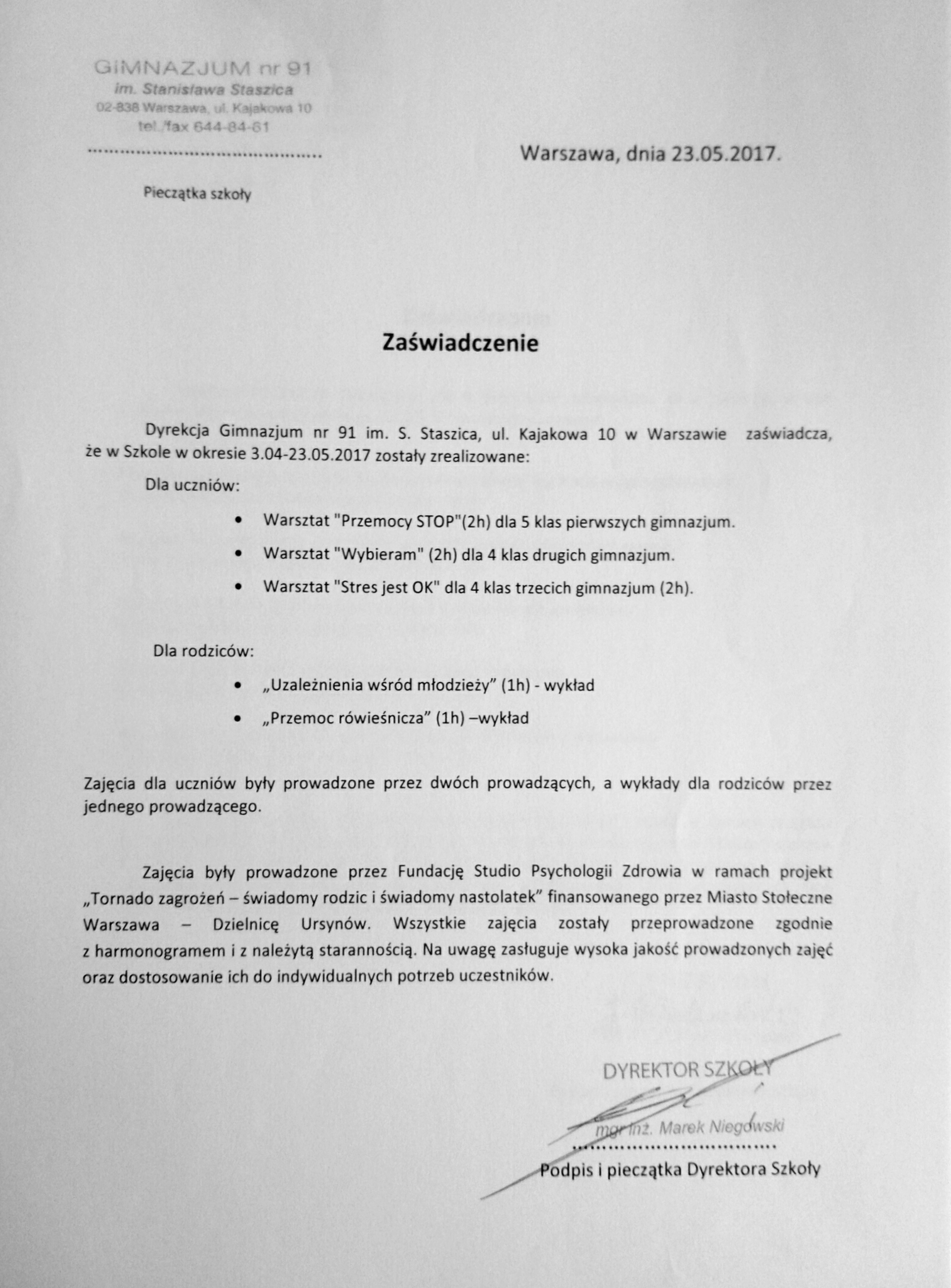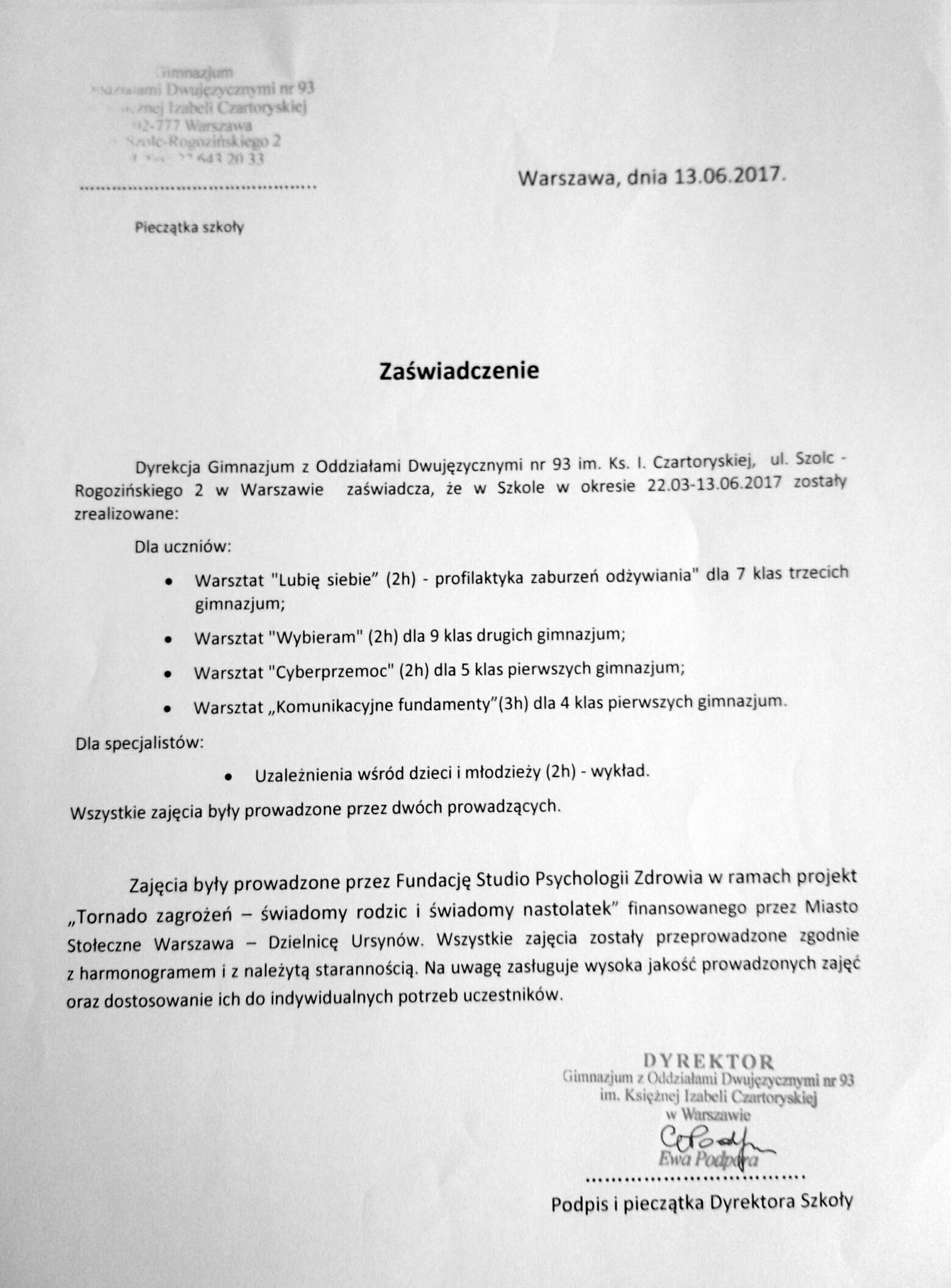 Opinie i rekomendacjeWasze opinie motywują nas do dalszej pracy. Dziękujemy! Tornado zagrożeń – świadomy rodzic i świadomy nastolatek 2017 Klinika Chorób Zakaźnych Wieku Dziecięcego - 2013 Miejski Ośrodek Pomocy Społecznej – Sulejówek Poradnia Psychologiczno-Pedagogiczna w Kwidzynie-1 Sąd Rejonowy - 2012 Straż Miejska 2012-1 Straż Miejska 2012-2 Tornado zagrożeń – świadomy rodzic i świadomy nastolatek 2017-1 Tornado zagrożeń – świadomy rodzic i świadomy nastolatek 2017-2 Tornado zagrożeń – świadomy rodzic i świadomy nastolatek 2017-3 Tornado zagrożeń – świadomy rodzic i świadomy nastolatek 2017-4 Tornado zagrożeń – świadomy rodzic i świadomy nastolatek 2017-5 Tornado zagrożeń – świadomy rodzic i świadomy nastolatek 2017-6 Tornado zagrożeń – świadomy rodzic i świadomy nastolatek 2017-7 Uniwersytet Jana Kochanowskiego w Kielcach-1