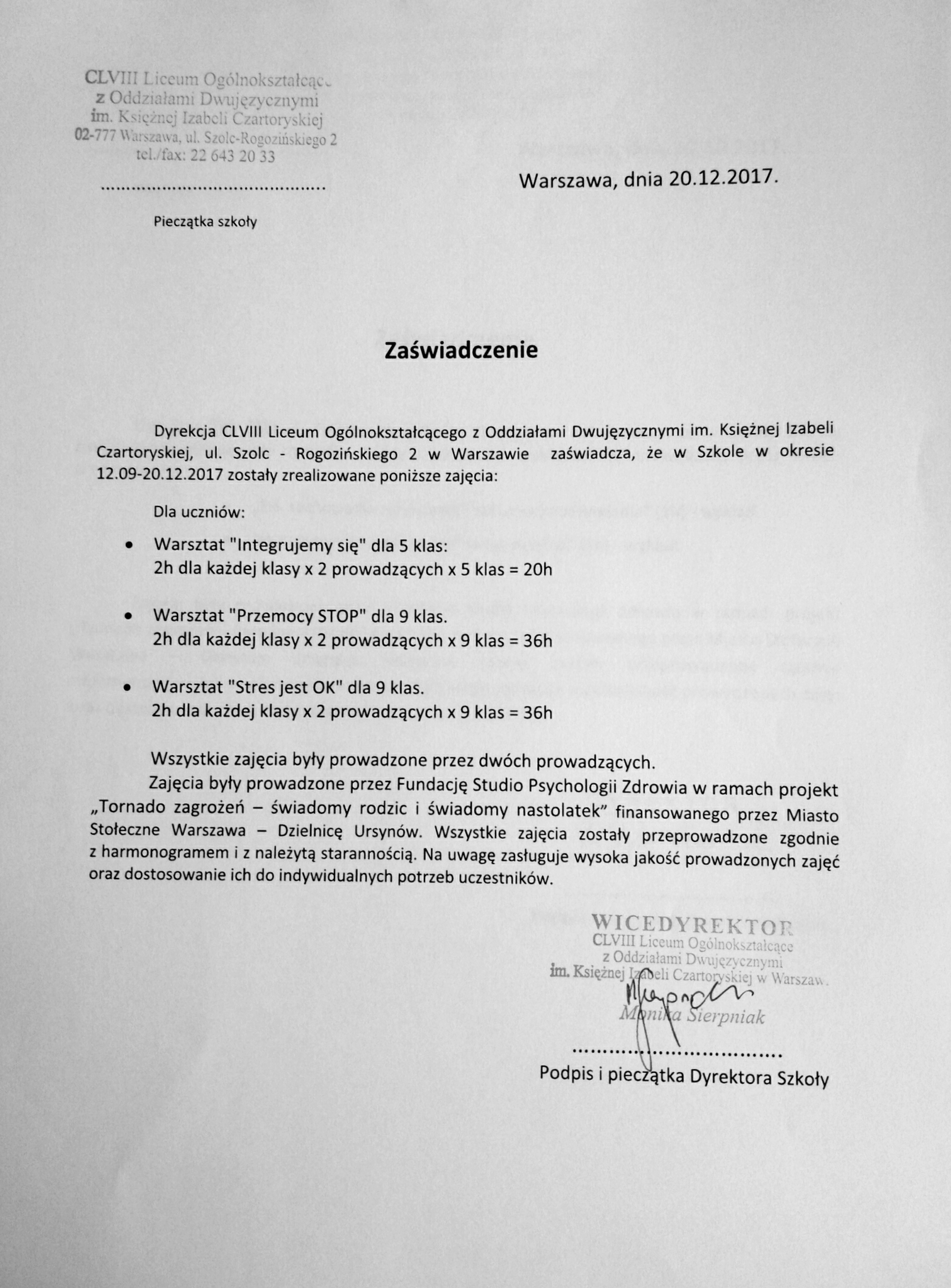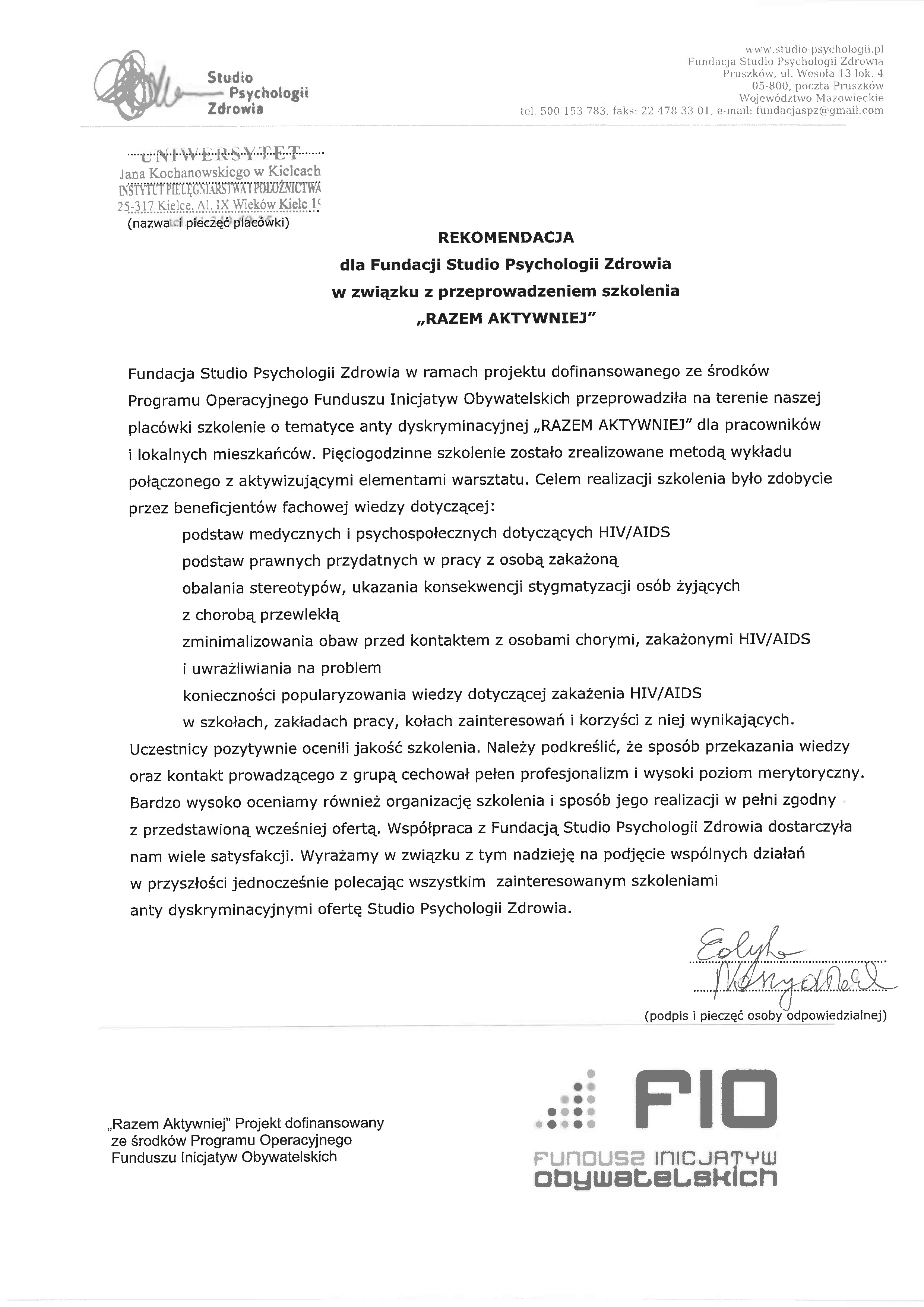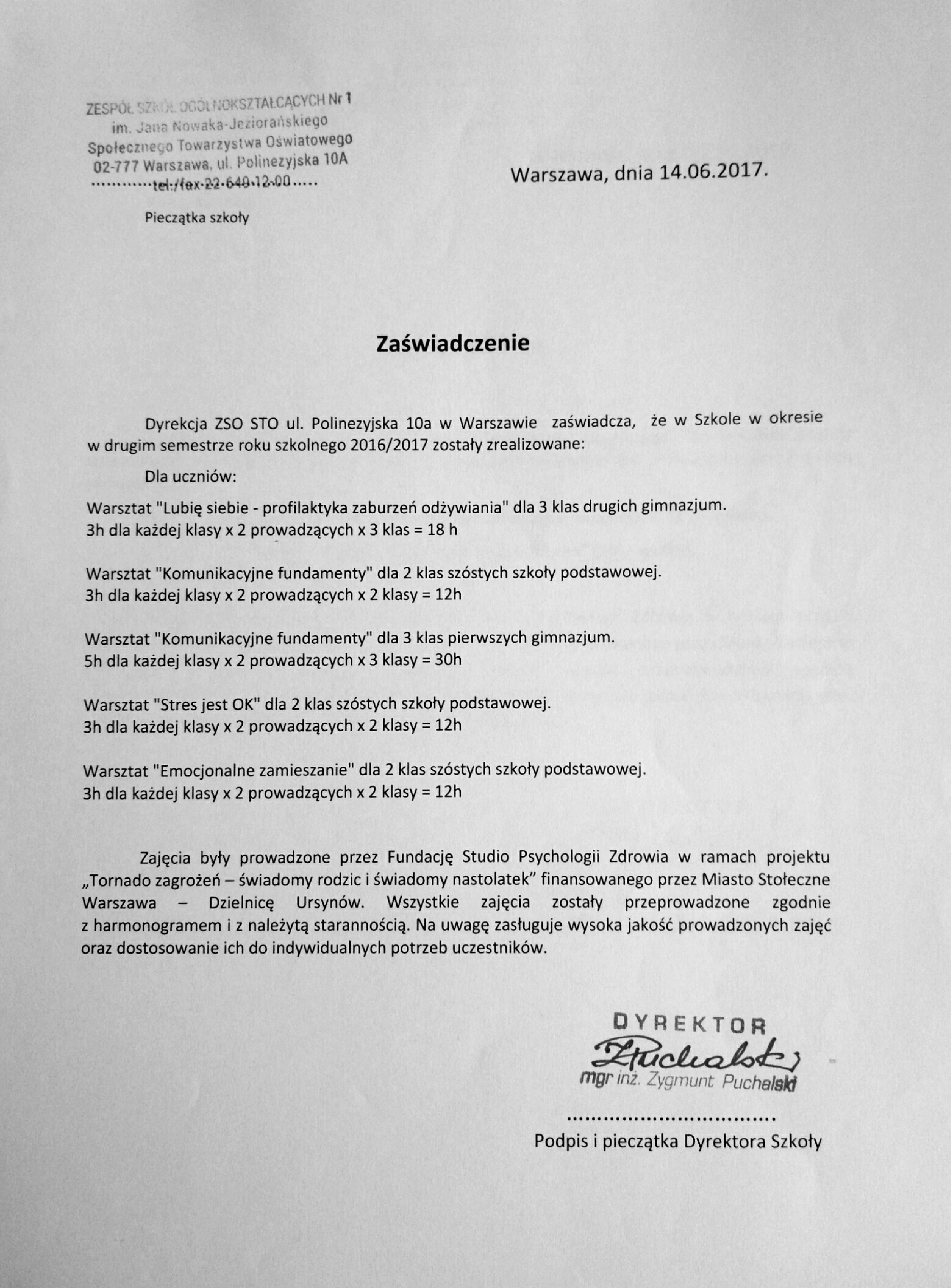 Opinie i rekomendacjeWasze opinie motywują nas do dalszej pracy. Dziękujemy! Tornado zagrożeń – świadomy rodzic i świadomy nastolatek 2017 Klinika Chorób Zakaźnych Wieku Dziecięcego - 2013 Miejski Ośrodek Pomocy Społecznej – Sulejówek Poradnia Psychologiczno-Pedagogiczna w Kwidzynie-1 Sąd Rejonowy - 2012 Straż Miejska 2012-1 Straż Miejska 2012-2 Tornado zagrożeń – świadomy rodzic i świadomy nastolatek 2017-1 Tornado zagrożeń – świadomy rodzic i świadomy nastolatek 2017-2 Tornado zagrożeń – świadomy rodzic i świadomy nastolatek 2017-3 Tornado zagrożeń – świadomy rodzic i świadomy nastolatek 2017-4 Tornado zagrożeń – świadomy rodzic i świadomy nastolatek 2017-5 Tornado zagrożeń – świadomy rodzic i świadomy nastolatek 2017-6 Tornado zagrożeń – świadomy rodzic i świadomy nastolatek 2017-7 Uniwersytet Jana Kochanowskiego w Kielcach-1